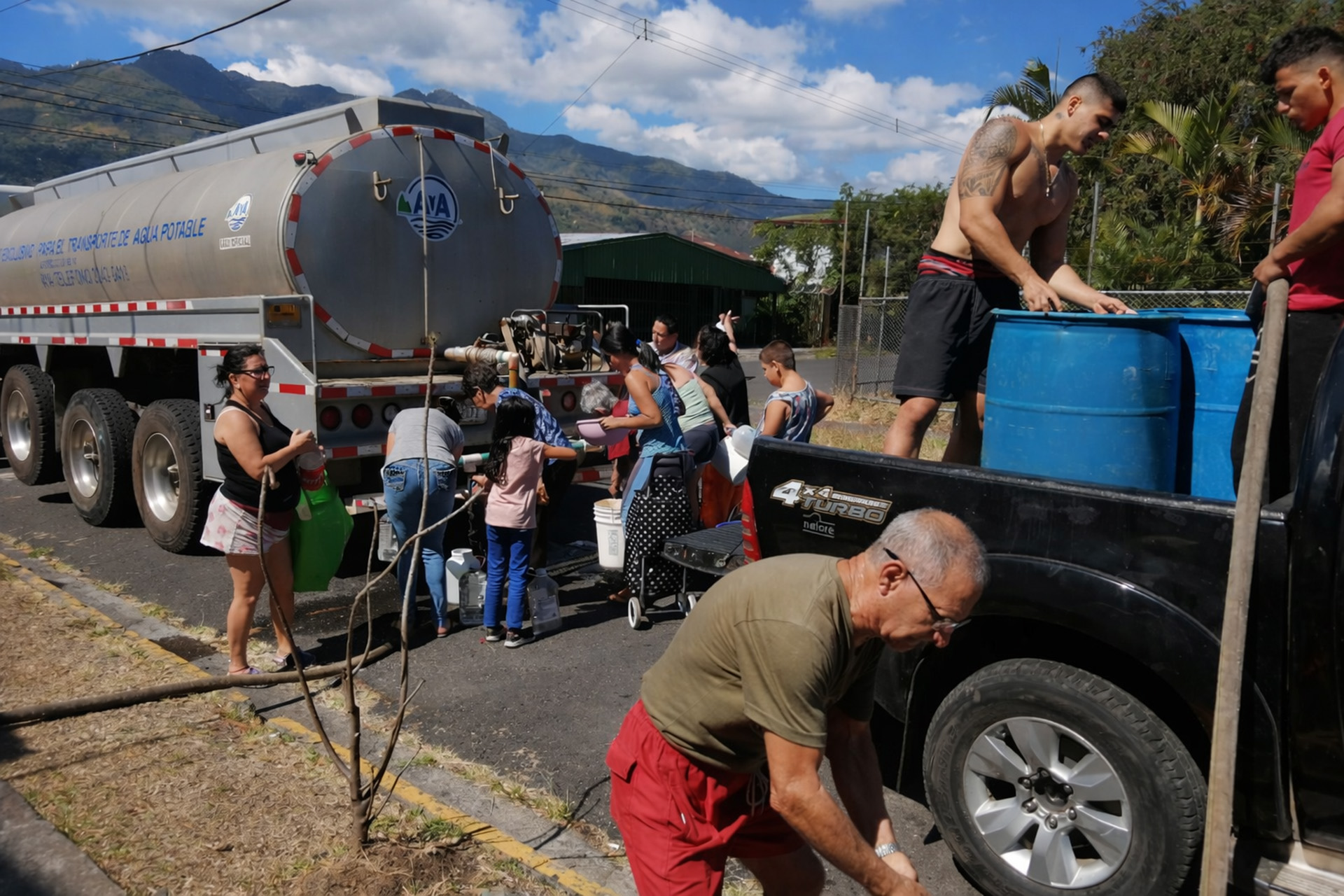 Personas de los barrios del sur de San José detrás de camión cisterna ante los problemas de tubería. Foto: cortesía de Acueductos y Alcantarillados